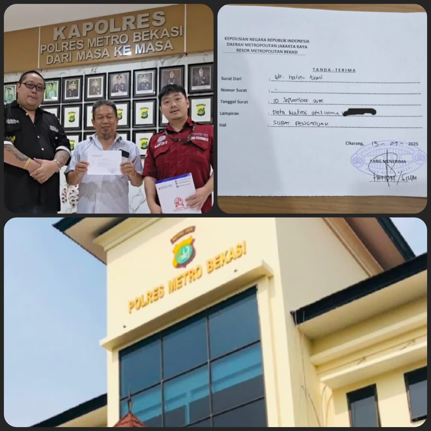 Kami harap Bapak Kapolres Metro Bekasi bisa memberi rasa keadilan terhadap klien kami. Dengan segera merespon aduan kami yang telah kami serahkan semenjak 13 September 2025 sebulan lebih. Pihak kami juga telah melayangkan surat ke Polres Metro Bekasi mempertanyakan kenapa sudah sebulan lebih tidak ada tindak lanjut.