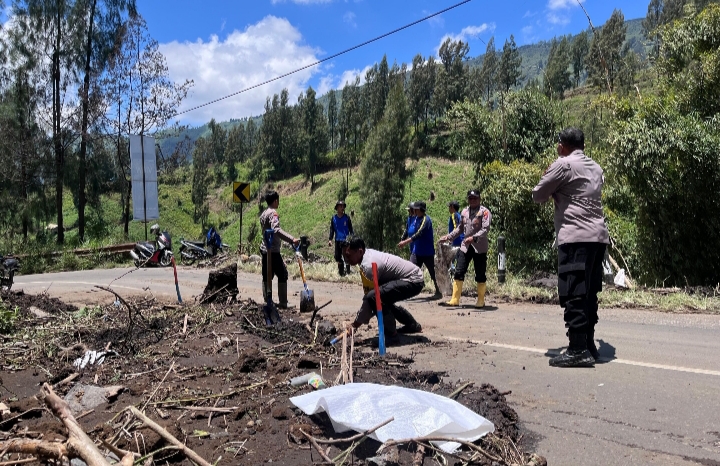 Aksi Cepat Tanggap Polres Probolinggo Tangani Tanah Longsor di Jalur Bromo