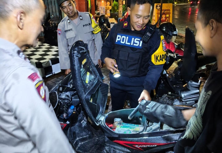 Selain itu, petugas juga melakukan pemeriksaan terhadap kendaraan bermotor yang tidak sesuai spesifikasi serta kendaraan yang terparkir mencurigakan di pinggir jalan. Imbauan kamtibmas diberikan secara humanis agar masyarakat tetap merasa aman dan nyaman.