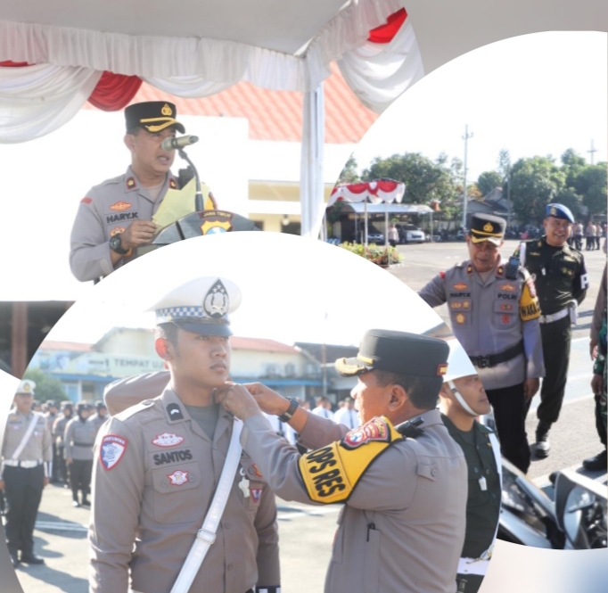 Apel dipimpin Wakapolres Kediri Kompol Hari Kurniawan, S.H., M.H., dan diikuti jajaran Polres Kediri bersama unsur Forkopimda dan instansi terkait, di antaranya Kodim 0809/Kediri, Subdenpom V/2-2, Satpol PP, Dinas Perhubungan, serta Jasa Raharja Kabupaten Kediri.