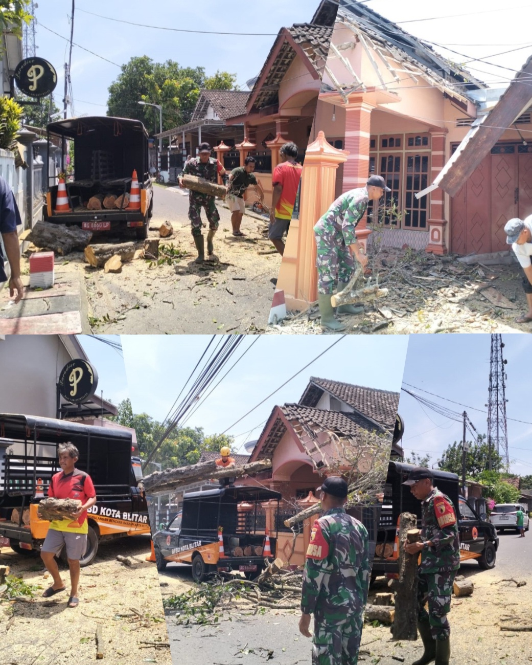 Untuk menangani kejadian tersebut, Babinsa berkoordinasi dengan pihak terkait. Tak lama kemudian, personel BPBD Kota Blitar datang ke lokasi untuk melaksanakan pembersihan pohon tumbang, yang dilakukan bersama Babinsa dan dibantu oleh warga sekitar secara gotong royong.