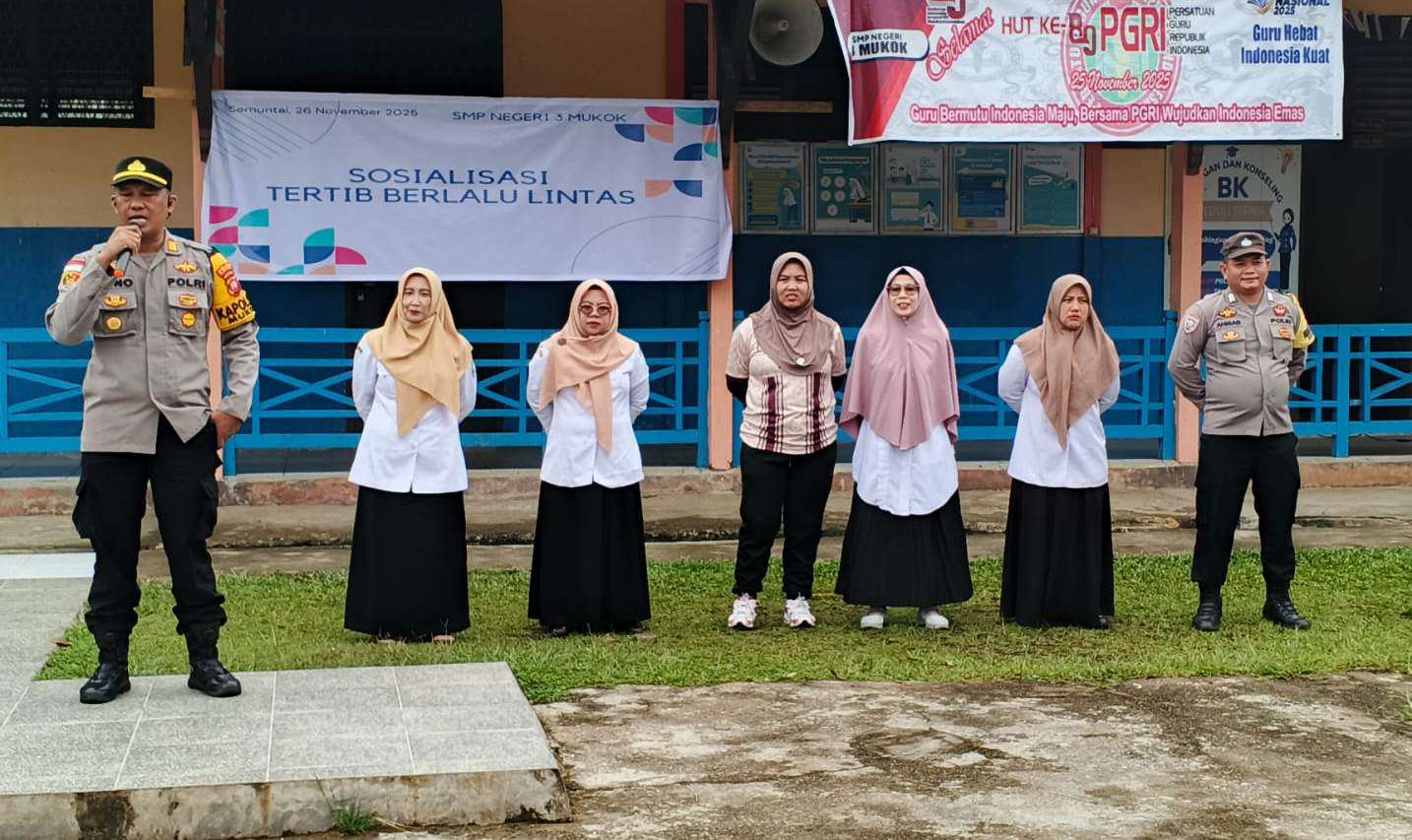 Cybertv.id.- Sanggau, Polda Kalbar – Polsek Mukok menggelar kegiatan sosialisasi keselamatan berlalu lintas di SMPN 3 Semuntai, Kecamatan Mukok, Kabupaten Sanggau, pada Rabu (26/11/2025) pukul 07.00 WIB.