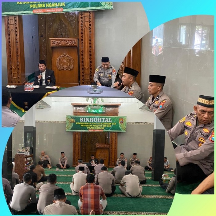 Binrohtal ini diharapkan mampu memberikan ketenangan batin, memperkuat moral, serta menumbuhkan kesadaran spiritual dalam pelaksanaan tugas di lapangan. Melalui kegiatan rutin ini, Polres Nganjuk berkomitmen membangun SDM Polri yang berkarakter, profesional, dan religius sebagai pondasi terciptanya pelayanan publik yang lebih baik.