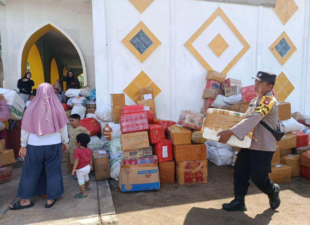 Selain memberikan pengamanan, personel Polsek Mukok juga aktif terlibat langsung dalam membantu jalannya kegiatan. Anggota kepolisian turut membantu proses pengangkutan barang, pengemasan bantuan, hingga penataan logistik agar seluruh bantuan dapat terkelola secara rapi dan tertib.