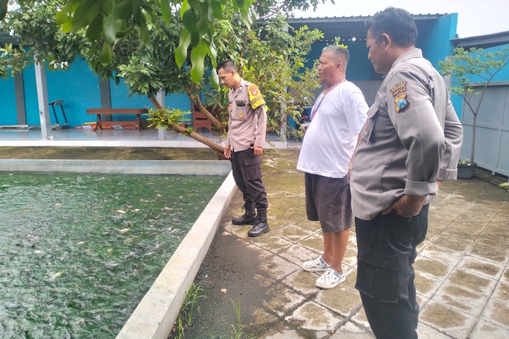 Bhabinkamtibmas Desa Pehserut, Aiptu Sarto, rutin melakukan pemantauan dan memberikan edukasi terkait pengelolaan kolam ikan kepada warganya.