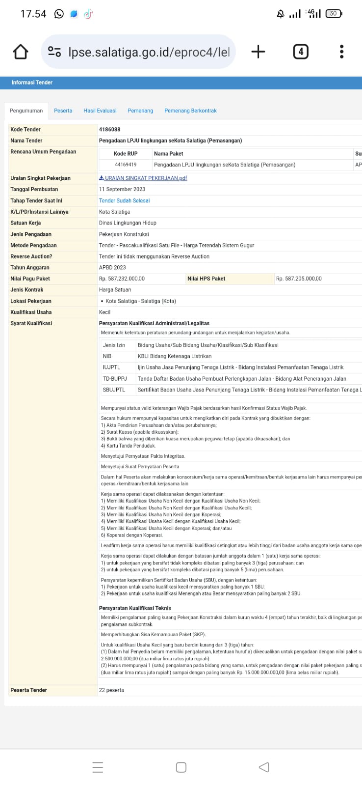 Di Duga Penyalahgunaan Wewenang,Proyek Pengadaan LPJU T.A 2023 Pada Dinas Lingkungan Hidup Kota Salatiga ,Kami Percaya Institusi POLRI