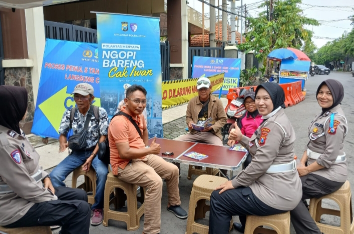 Ditlantas Polda Jatim Ngopi Bareng Warga Sosialisasi Tertib Lalin di Operasi Zebra Semeru