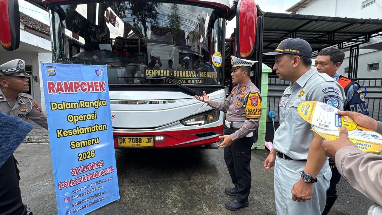 Cybertv.id-Kediri Kota – Satuan Lalu Lintas Polres Kediri Kota bersama instansi terkait melaksanakan kegiatan rampcheck kendaraan angkutan umum di Terminal Tamanan, Kecamatan Mojoroto, Kota Kediri, pada Jumat (6/2/2026) pagi. Kegiatan ini dilaksanakan dalam rangka mendukung pelaksanaan Operasi Lilin Semeru 2025 guna memastikan keselamatan dan kelayakan angkutan umum.
