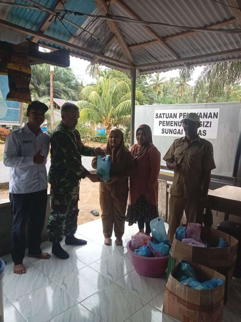 Pada Minggu, 7 Desember 2025, Babinsa dari Koramil 1207-08 Teluk Pakedai Sertu Samsir aktif melaksanakan pendistribusian Makanan Bergizi Gratis (MBG) bekerja sama dengan Satuan Pelayanan Pemenuhan Gizi (SPPG) di wilayah Kecamatan Teluk Pakedai, Kabupaten Kubu Raya, Kalimantan Barat.
