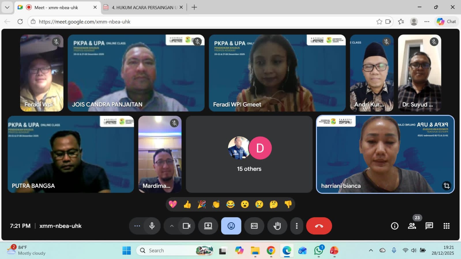Cybertv.id – Jakarta, 30 Desember 2025. – Dewan Pimpinan Daerah Feradi WPI Jakarta Raya sukses Gelar Pendidikan Khusus Profesi Advokat ( PKPA ) sejak Tanggal (20-21/12/2025, (27-28/12/2025) dan UPA (29/12/2025) lewat Zoom Meeting.
