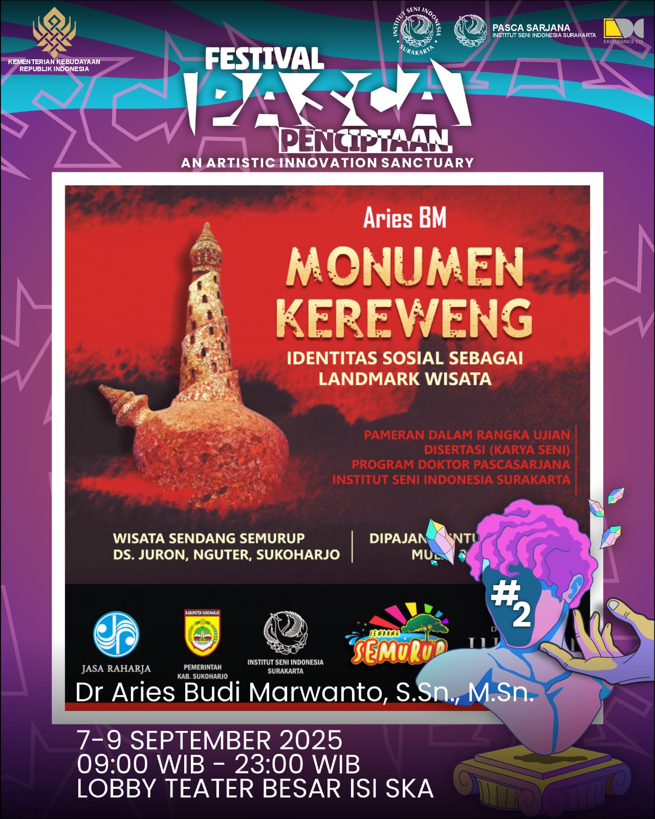 Ketiga karya tersebut merupakan hasil pencapaian disertai seni yang menamatkan dirinya dari sekolah doktoral di pasca sarjana ISI Solo pada tahun 2021 silam dengan judul disertai dalam tajuk judul “MONUMEN KREWENG IDENTITAS SOSIAL SEBAGAI LANDMARK WISATA.”(9/9/2025)