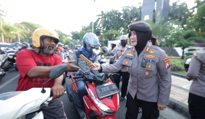 Pakor Polwan Polda Jatim,AKBP Yayuk Sri Wahyuningtyas mengatakan kegiatan ini bukan hanya sekadar gatur lalu lintas, tetapi juga bentuk kepedulian dan apresiasi kami kepada masyarakat yang sudah tertib berkendara