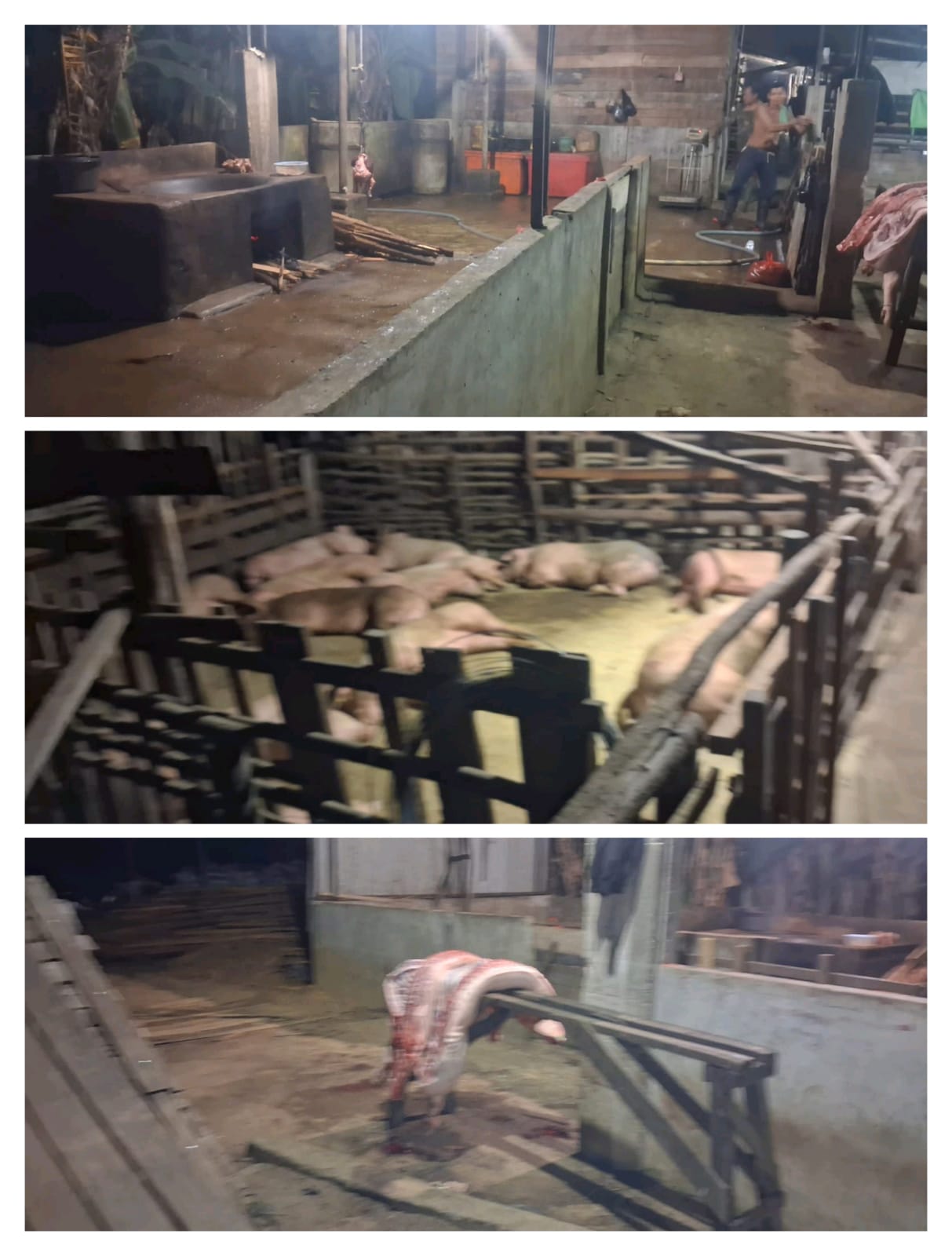 “Pemotongan hewan itu seharusnya melalui karantina dan pengawasan. Tapi yang kami lihat, para pekerja langsung memotong di gudang itu tanpa prosedur resmi,” ungkap warga lainnya.