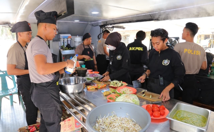 Taruna Tingkat III Akademi Kepolisian, Intan Gustava Rongrean, menyampaikan bahwa dapur lapangan tersebut menyiapkan berbagai menu makanan bergizi untuk masyarakat.