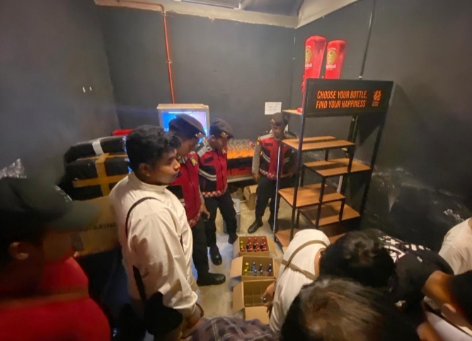 “Puluhan botol miras tanpa izin kemudian diamankan oleh petuas gabungan,” kata Ipda Nanang, Kamis (16/10/2025).