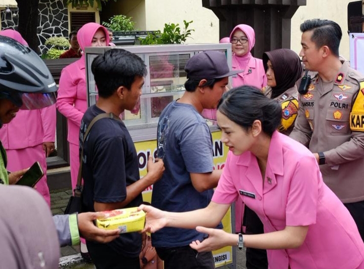 Seperti halnya dilakukan oleh Polsek Taman Polresta Sidoarjo bersama segenap anggota dan pengurus Bhayangkari di depan Mako Polsek Taman, Jumat (2/1/2026).