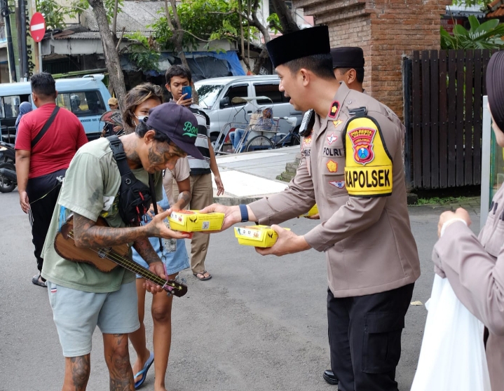Jumat Berkah, Polsek Taman Berbagi Makanan di Jalan Raya Wonocolo Sidoarjo