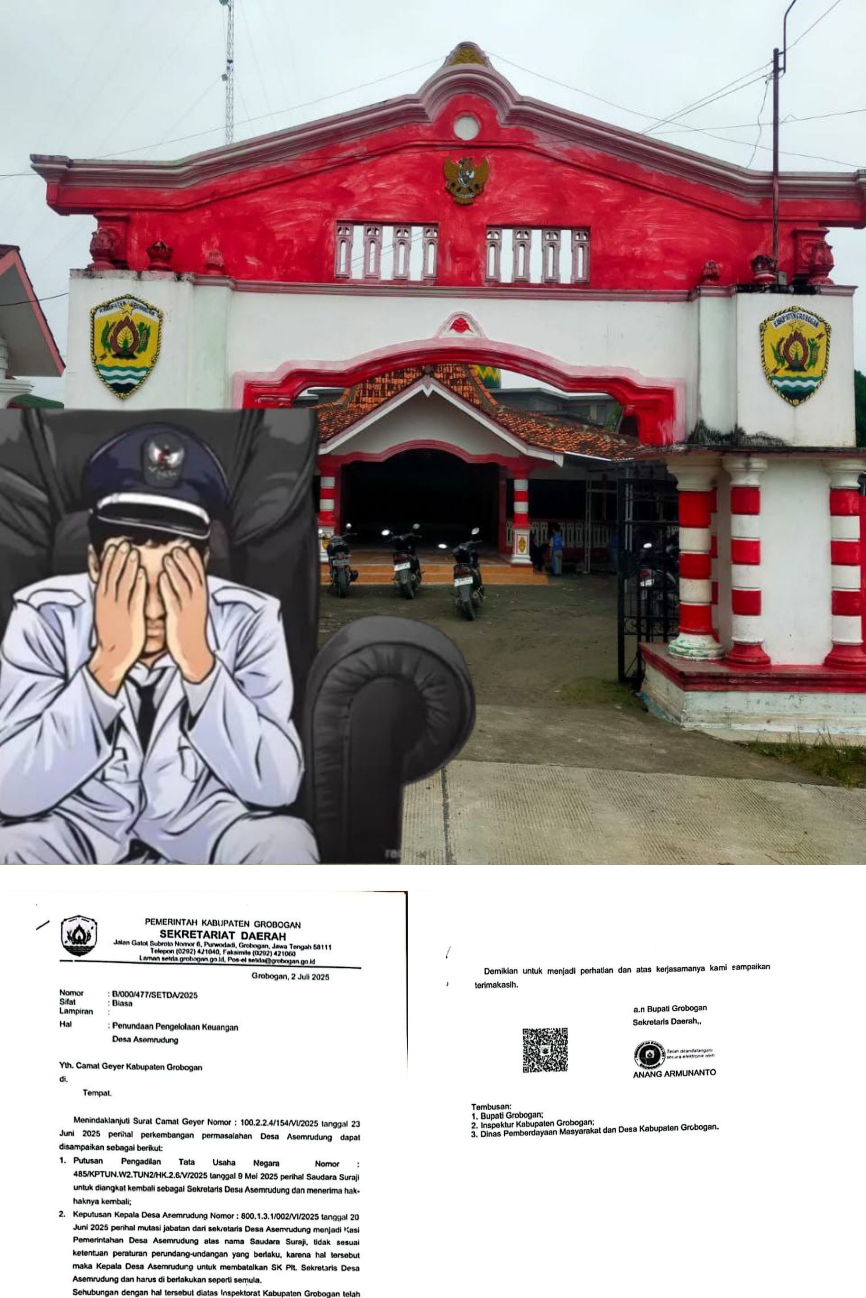 Langkah Kades ini dinilai tidak sesuai dengan peraturan perundang-undangan yang berlaku. Menyikapi kondisi tersebut, Sekretaris Daerah (Sekda) Kabupaten Grobogan menerbitkan surat kepada Camat Geyer dengan Nomor: B/000/477/SETDA/2025 tertanggal 2 Juli 2025. Surat itu berisi perintah penundaan pengelolaan keuangan Desa Asemrudung hingga proses pemeriksaan oleh Inspektorat selesai dilakukan.