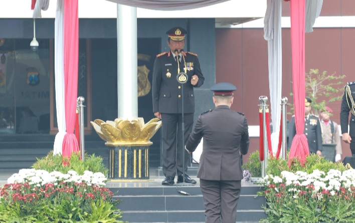 Upacara dipimpin oleh Kapolda Jawa Timur Irjen Pol Drs. Nanang Avianto, M.Si., dan diikuti oleh Pejabat Utama Polda Jatim, personel Polri, ASN, serta peserta upacara lainnya.