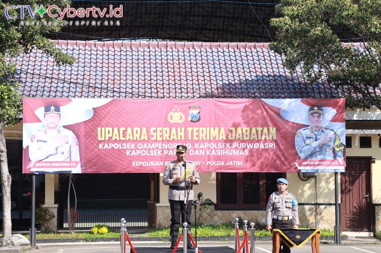 Cybertv.id-Kediri – Polres Kediri menggelar upacara serah terima jabatan (Sertijab) tiga Kapolsek, sebagai upaya meningkatkan kinerja. Upacara Sertijab dipimpin langsung oleh Kapolres Kediri AKBP Bimo Ariyanto S.H., S.I.K, di Mapolres setempat, pada Kamis 24 April 2025, pagi.