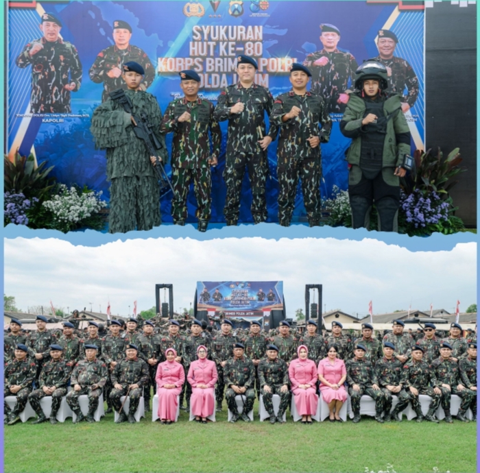 Jajaran Kapolres/ta/tabes dari berbagai wilayah di Jawa Timur berkumpul untuk menghadiri Syukuran HUT ke-80 Korps Brimob Polri tahun 2025, termasuk Kapolres Kediri AKBP Bramastyo Priaji, S.H., S.I.K., M.Si.