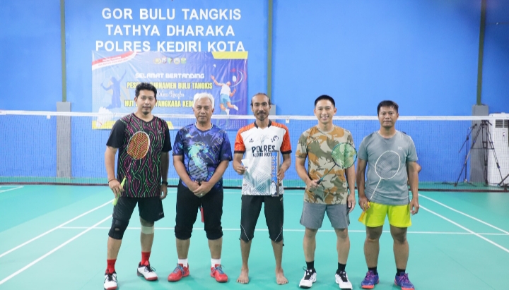 Cybertv.id-Kota Kediri – Suasana penuh keakraban tampak di GOR Tathya Dharaka Polres Kediri Kota, ketika Kapolres Kediri Kota AKBP Anggi Saputra Ibrahim, S.H., S.I.K., M.H., melaksanakan latihan bulu tangkis bersama Wakil Walikota Kediri Gus Qowim, pada Selasa (26/8/2025).