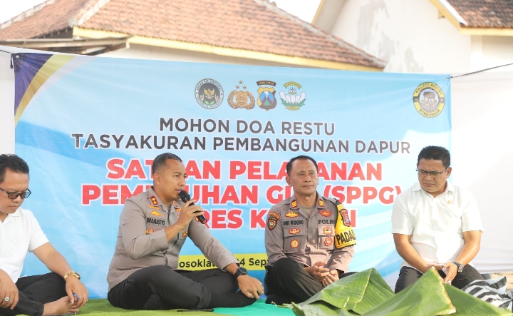 Rabu (24/9/2025) sore, Kapolres Kediri AKBP Bramastyo Priaji, S.H., S.I.K., M.Si., secara resmi meletakkan batu pertama pembangunan Gedung Satuan Pelayanan Pemenuhan Gizi (SPPG) Polres Kediri II di Mapolsek Plosoklaten, Desa Plosolor, Kecamatan Plosoklaten, Kabupaten Kediri.