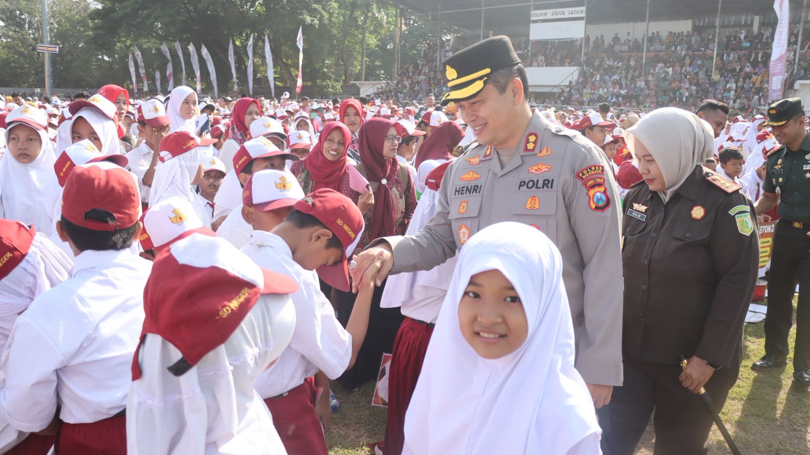 Kapolres Nganjuk Hadiri Apel Akbar KNC 2025, Ribuan Pelajar Nganjuk Terima Beasiswa