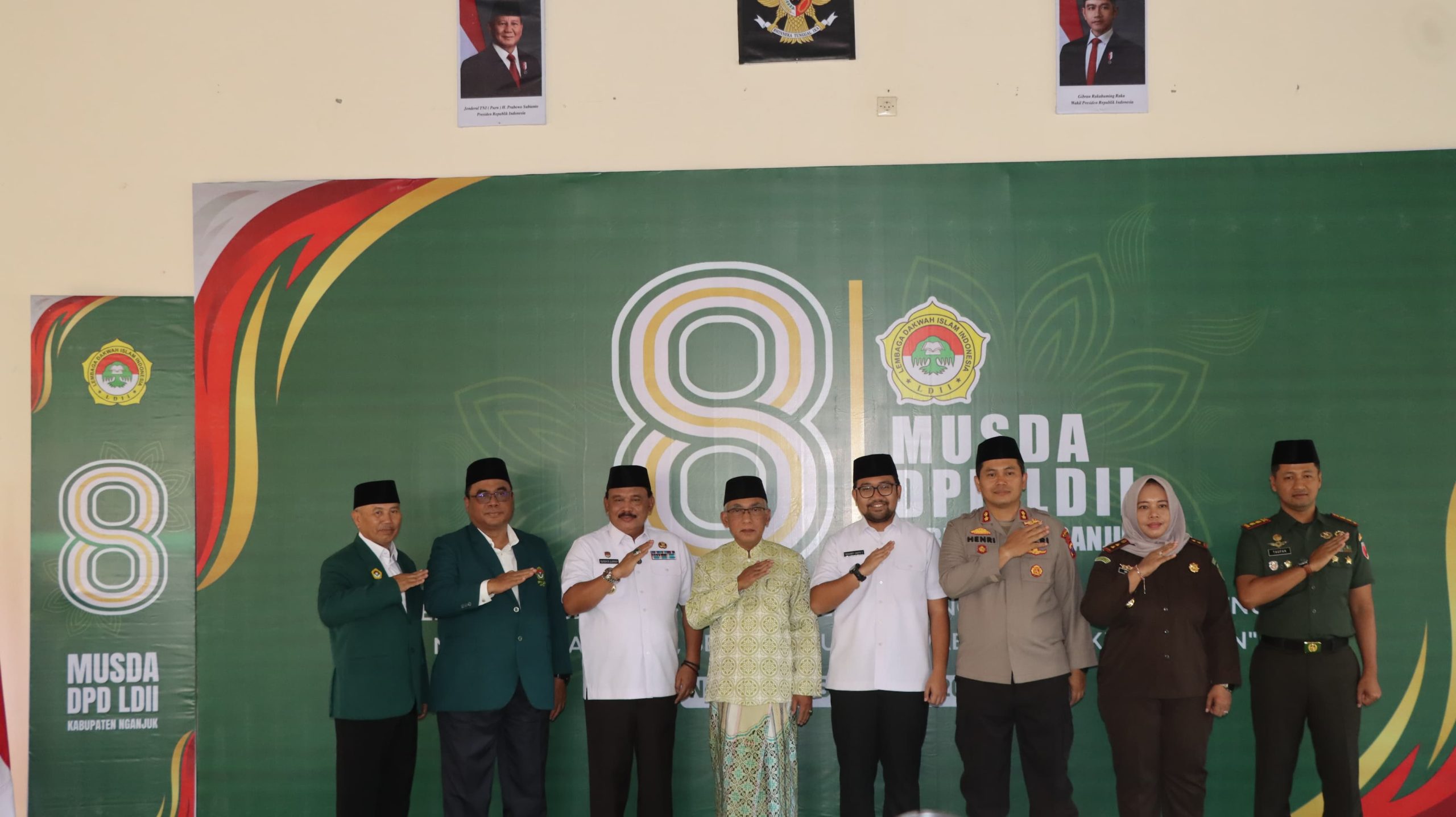 Cybertv.id-Nganjuk – Kapolres Nganjuk AKBP Henri Noveri Santoso, S.H., S.I.K., M.M. bersama Forkopimda Kabupaten Nganjuk menghadiri undangan pembukaan Musyawarah Daerah (Musda) VIII Lembaga Dakwah Islam Indonesia (LDII) Kabupaten Nganjuk di Kantor DPD LDII, Jl. Raya Madiun-Surabaya, Desa Pehserut, Kecamatan Sukomoro, Rabu (24/9/2025). Kegiatan lima tahunan ini salah satunya membahas pemilihan ketua organisasi.