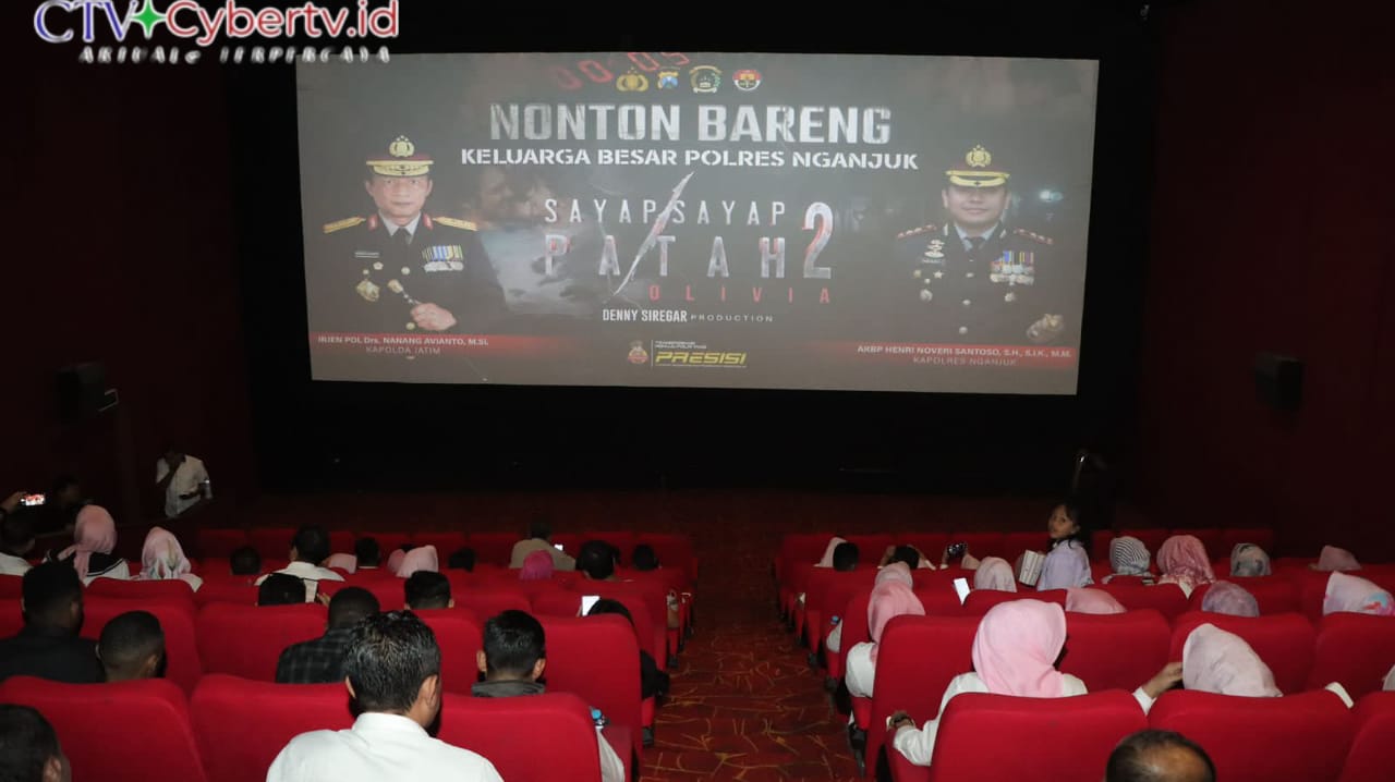 Cybertv.id-Nganjuk – Kapolres Nganjuk AKBP Henri Noveri Santoso, S.H., S.I.K., M.M. bersama Wakapolres, Pejabat Utama, anggota, Ketua dan pengurus Bhayangkari Cabang Nganjuk, kelompok masyarakat, serta awak media menghadiri kegiatan nonton bareng film “Sayap-Sayap Patah 2: Olivia” di NSC Nganjuk, Kamis (15/5/2025). Kegiatan ini diikuti sekitar 100 penonton dari berbagai unsur.