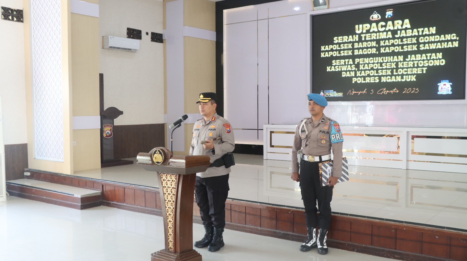 Sementara itu, pengukuhan jabatan dilakukan untuk Kasiwas, Kapolsek Kertosono, dan Kapolsek Loceret sebagai bagian dari promosi jabatan dan tahapan pengusulan kenaikan pangkat.