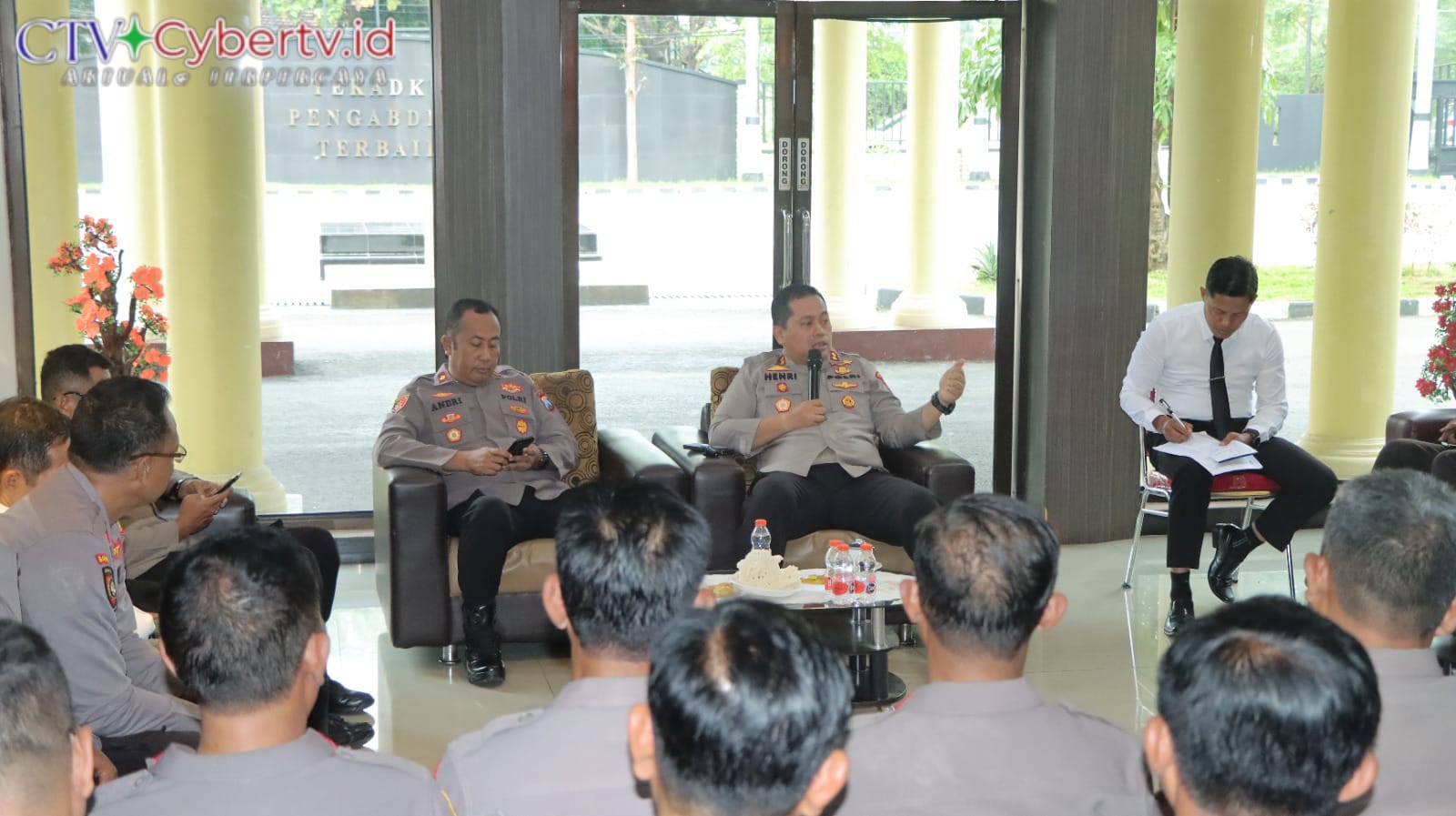 Cybertv.id-Nganjuk – Kapolres Nganjuk AKBP Henri Noveri Santoso, S.H., S.I.K., M.M. menekankan pentingnya optimalisasi kehadiran anggota Polri di lapangan dalam rangka meningkatkan pelayanan kepada masyarakat. Hal itu disampaikannya saat kegiatan coffee morning bersama para Pejabat Utama (PJU) dan Kapolsek jajaran di Lobby Polres Nganjuk, Senin (26/05/2025).