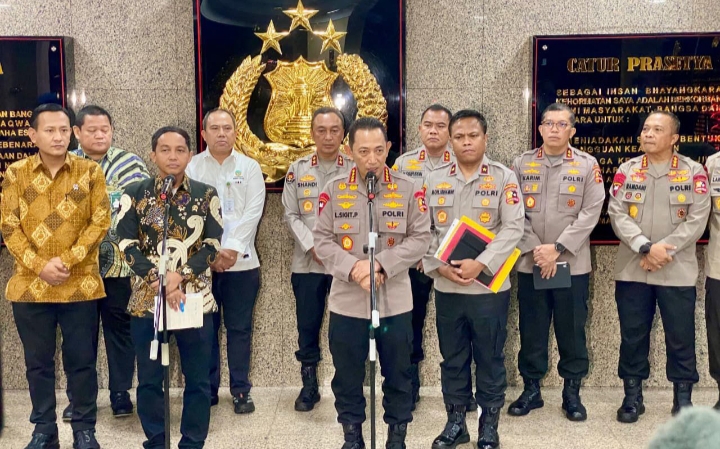 Cybertv.id-Jakarta – Kapolri Jenderal Polisi Listyo Sigit Prabowo bersama Menteri Kehutanan Raja Juli Antoni menggelar doorstop usai audiensi di Gedung Utama Mabes Polri, Kamis malam (4/12/2025). Pertemuan tersebut membahas penanganan temuan kayu yang diduga menjadi salah satu faktor terjadinya kerusakan infrastruktur dan korban jiwa akibat bencana di Aceh, Sumatera, dan Sumatera Barat.