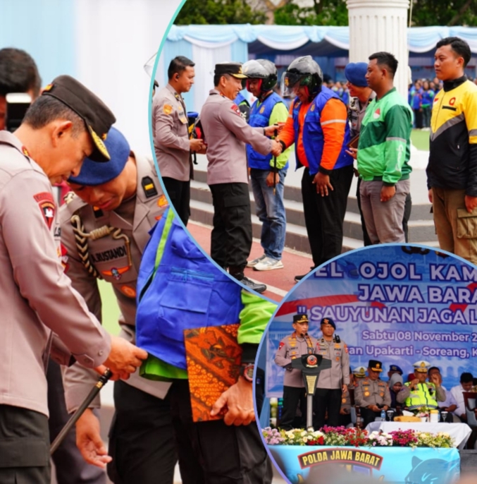 Cybertv.id-Jabar – Kapolri Jenderal Listyo Sigit Prabowo memimpin apel ojek online (ojol) kamtibmas ‘Sauyunan Jaga Lembur’ Polda Jawa Barat di Lapangan Upakarti, Soreang, Kabupaten Bandung, Jawa Barat (Jabar), Sabtu, 8 November 2025. Kegiatan ini merupakan sinergisitas untuk saling menjaga keamanan di lingkungan masyarakat.