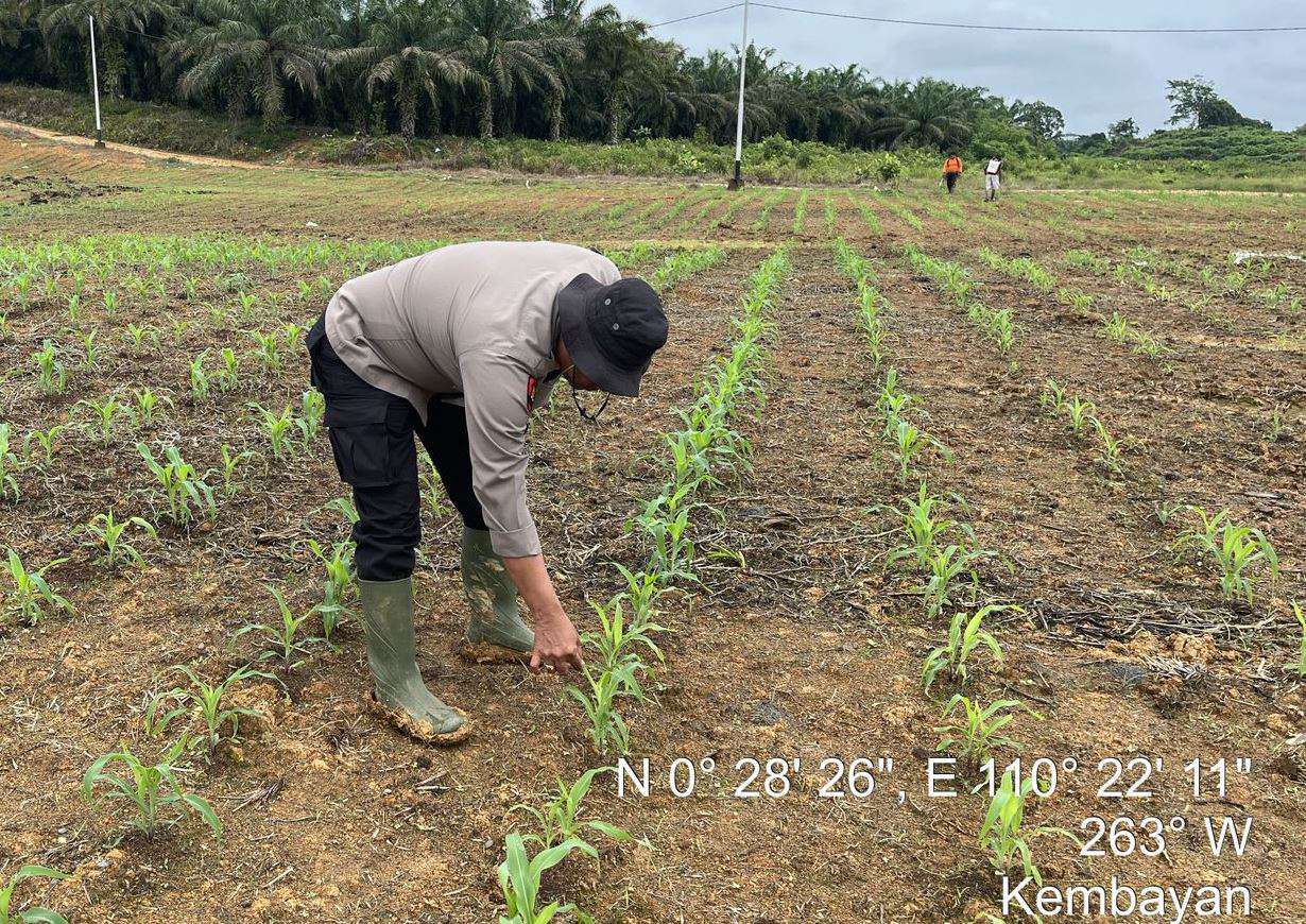 Kapolsek Kembayan Tinjau Langsung Lahan Demplot, Pastikan Tanaman Tumbuh Optimal dan Bebas Hama