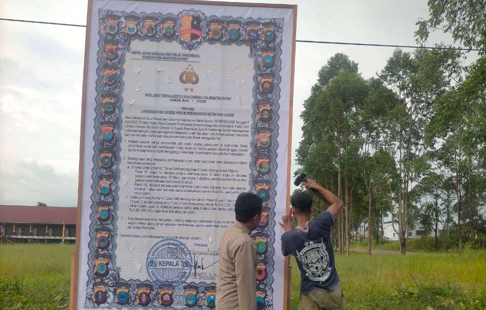 Cybertv.id.Sanggau, Polda Kalbar – Dalam upaya mencegah terjadinya kebakaran hutan dan lahan (Karhutla) di wilayah Kabupaten Sanggau, Polsek Parindu melakukan langkah konkret melalui pemasangan banner dan penempelan Maklumat Kapolda Kalbar Nomor: MAK / 1 / V / 2025 tentang larangan dan sanksi hukum pembakaran hutan dan lahan, Jumat (8/8/2025).