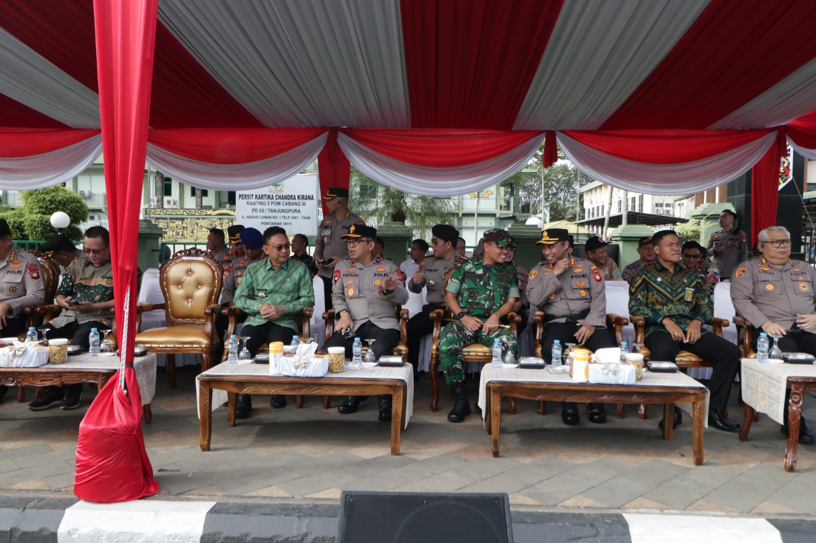 ​Simulasi yang dipimpin langsung oleh Kapolresta Pontianak, Kombes Pol Suyono, S.I.K., S.H., M.H., tersebut disaksikan oleh Waka Polda Kalbar, Brigjen Pol Roma Hutajulu, S.I.K, M.Si, didampingi Pejabat Utama (PJU) Polda Kalbar, bersama Wali Kota Pontianak Ir. Edi Rusdi Kamtono, MM, MT, Perwakilan dari unsur Forum Koordinasi Pimpinan Daerah (Forkopimda) Kalimantan Barat, serta para Kapolsek jajaran Polresta Pontianak.
