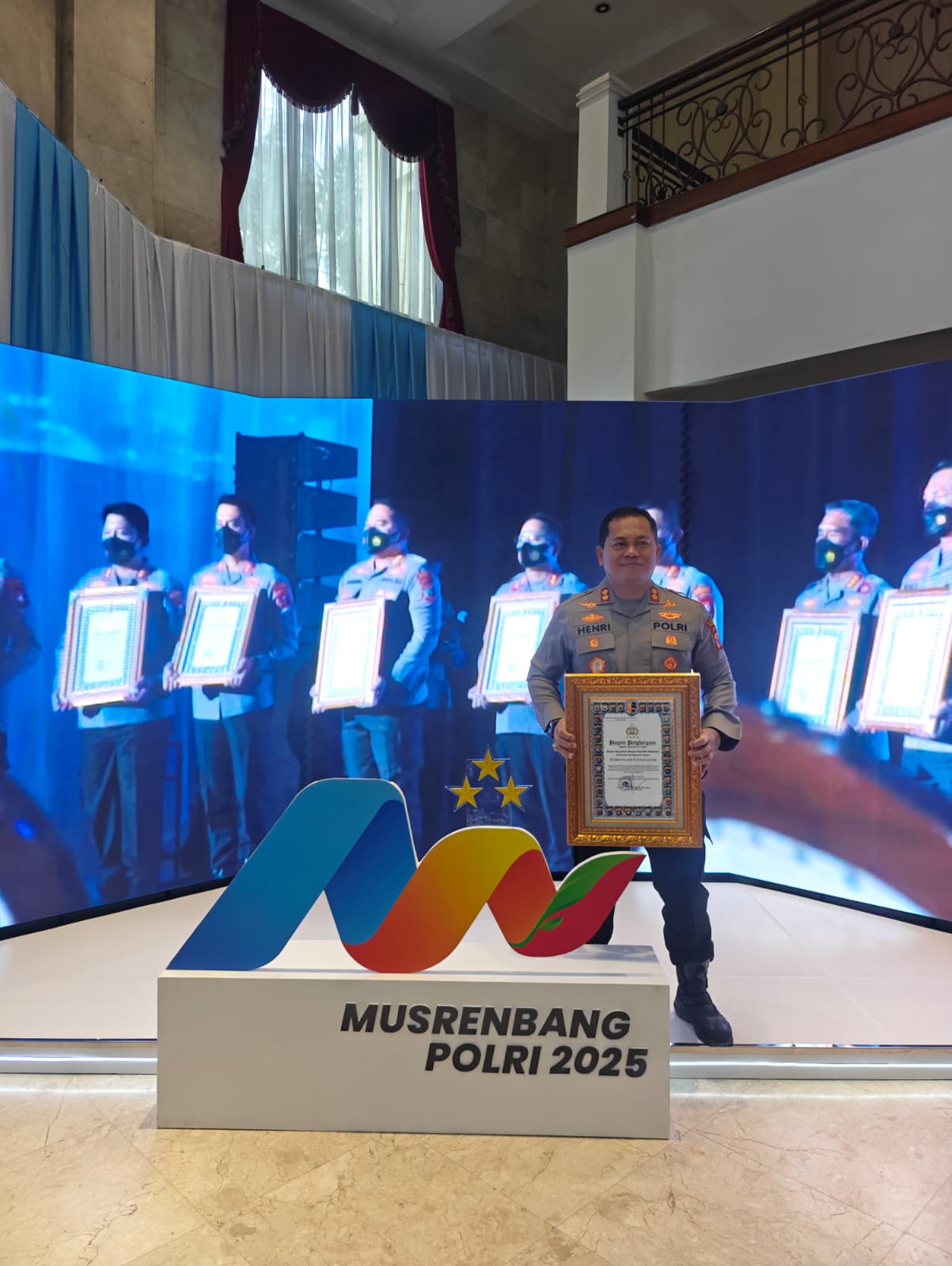 Kapolres Nganjuk, AKBP Henri Noveri Santoso, S.H., S.I.K., M.M., menerima langsung piagam penghargaan tersebut sebagai bentuk apresiasi atas komitmen dan kontribusi jajaran Polres Nganjuk dalam meningkatkan kualitas pelayanan kepada masyarakat.