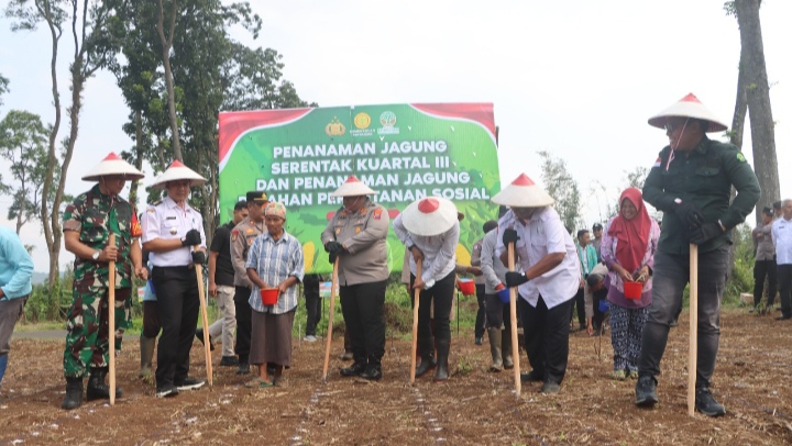 Kolaborasi Untuk Swasembada : Polres Pasuruan Tanam Jagung Serentak di Lahan Perhutanan Sosial