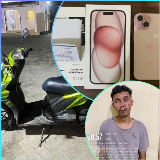 Petugas gabungan bergerak melakukan penyelidikan. Dari analisis transaksi bank, petugas menemukan pembelian ponsel baru menggunakan rekening korban. Jejak ini mengarah pada terduga pelaku FA (24), yang akhirnya ditangkap di wilayah Kota Kediri. Uang tunai, ponsel baru, dan sejumlah barang bukti lain berhasil diamankan.