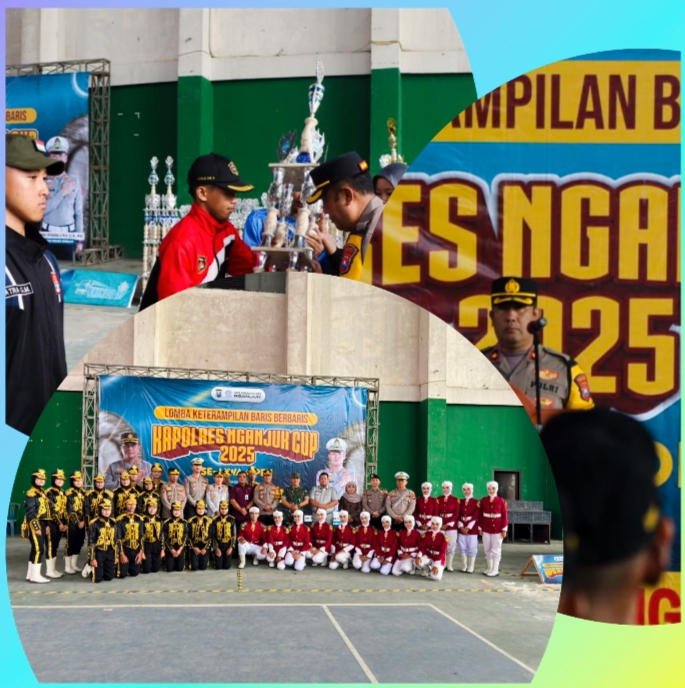 Cybertv.id-Nganjuk – Upacara pembukaan Lomba Keterampilan Baris Berbaris (LKBB) Kapolres Nganjuk Cup ke-2 Tahun 2025 resmi digelar Satlantas Polres Nganjuk di GOR Begadung, Sabtu (22/11/2025).