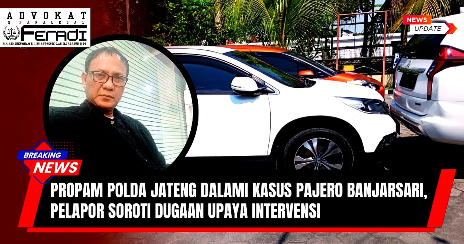 JKJ. dari Firma Hukum Subur Jaya dan Rekan – ( Ketua Umum Organisasi Advokat FERADI WPI ) menyampaikan ketentuan UU No. 42/1999 tentang Jaminan Fidusia dan putusan Mahkamah Konstitusi melalui sambungan telepon kepada para oknum yang merampasa dan sedang menguasai Pajero milik klien / korban, arah penyerahan kendaraan berubah dan unit mobil kemudian dibawa ke halaman Polsek Banjarsari Surakarta oleh Oknum² DC dan atas permintaan Kanit Reskrim Polsek Banjarsari Unit Pajero Sport Dakar AD 1346 QP diminta dititipkan di Parkiran Polsek Banjarsari Surakarta Jawa Tengah.