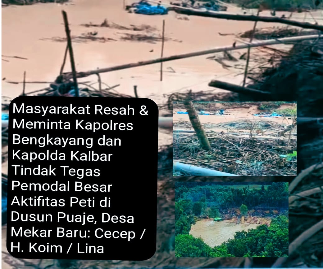 Aktivitas Pertambangan Emas Tanpa Izin (PETI) terungkapn di Kampung Puaje, Desa Mekar Baru, Kecamatan Monterado, Kabupaten Bengkayang, adanya laporan warga dusun puaje benama Simon atas penyererobatan lahan di polres bengkayang.