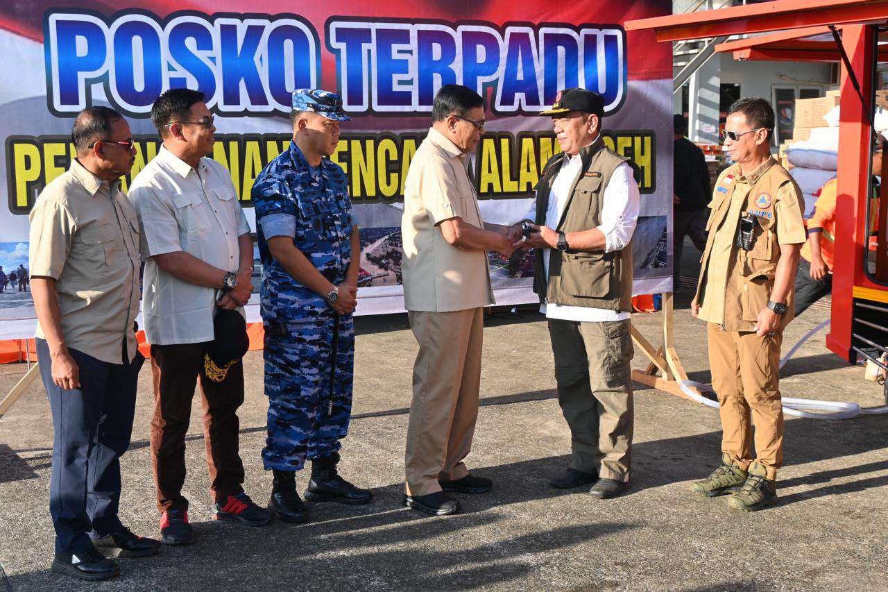 Di posko, Menko Polkam menerima laporan kondisi terkini dari Bupati Pidie Jaya, Aiyub Abbas, dan menyaksikan penyerahan satu unit kendaraan penjernih air dari BNPB kepada Komando Distrik Militer (Kodim) setempat. Kendaraan tersebut langsung diuji coba mengolah air sungai menjadi air layak minum untuk memenuhi kebutuhan air bersih korban bencana.