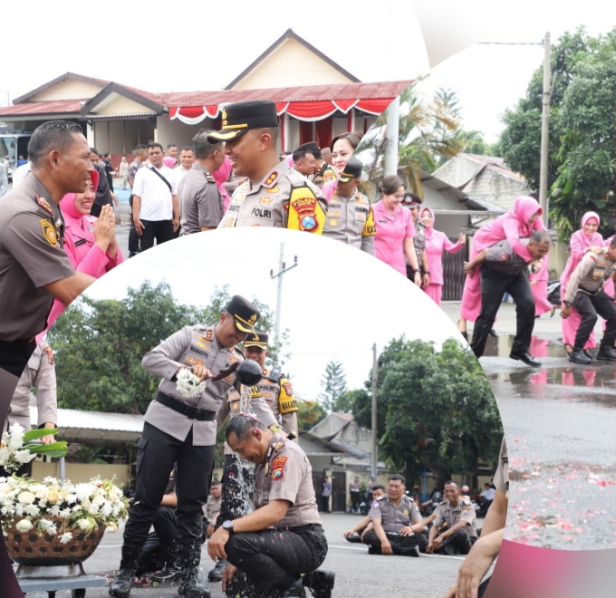 Usai upacara, kegiatan dilanjutkan dengan tradisi penyiraman kembang kepada personel yang naik pangkat, pemotongan tumpeng, serta momen kebersamaan bersama keluarga dan Bhayangkari sebagai bentuk ungkapan syukur. Suasana berlangsung hangat dan penuh keakraban.