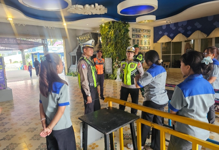 Petugas juga memberikan imbauan langsung kepada wisatawan agar selalu menjaga keselamatan diri dan barang bawaan.