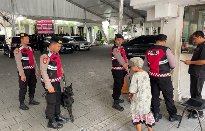 Dalam pelaksanaannya, personel Ditsamapta Polda Jatim mengerahkan satwa K9 untuk melakukan pemeriksaan menyeluruh di area dalam dan sekitar gereja.
