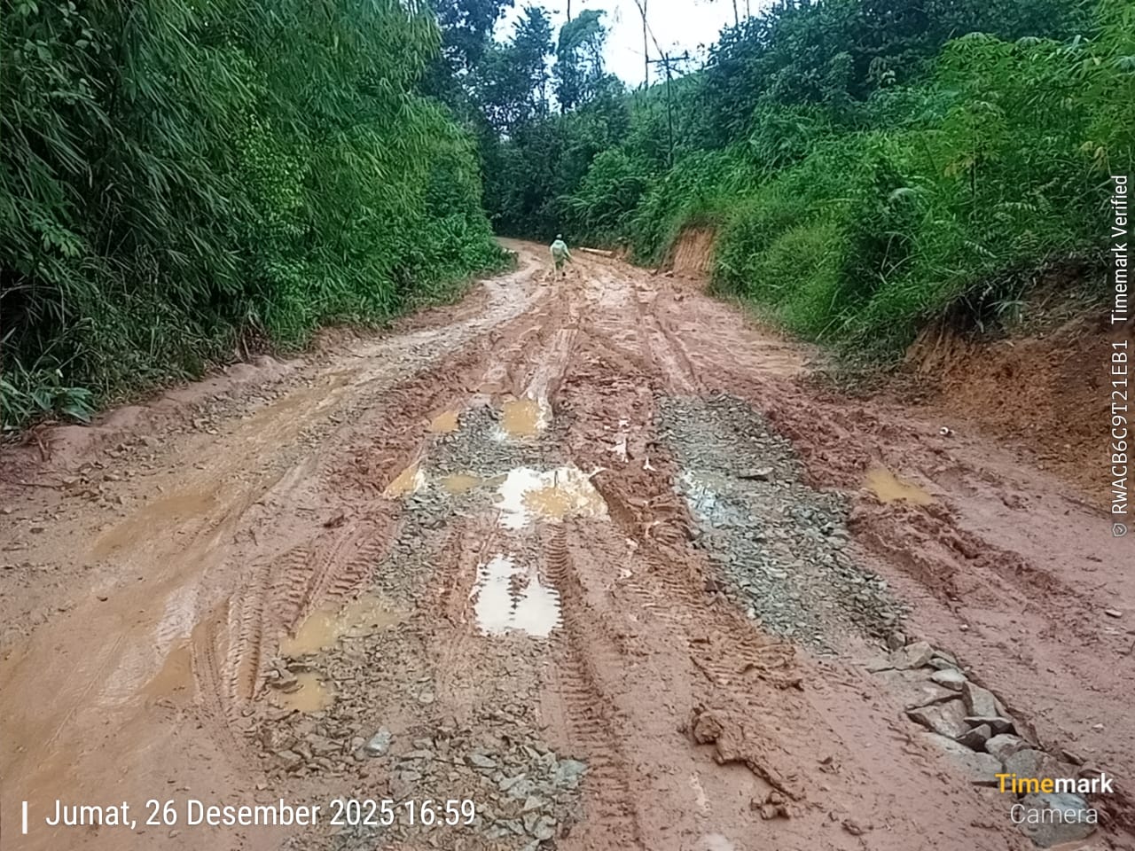 Berdasarkan temuan investigasi awak media pada 26 Desember 2025 kondisi jalan tersebut rusak parah, berlubang, tergenang lumpur, dan menyerupai kubangan babi, sehingga nyaris tidak layak dilalui masyarakat.