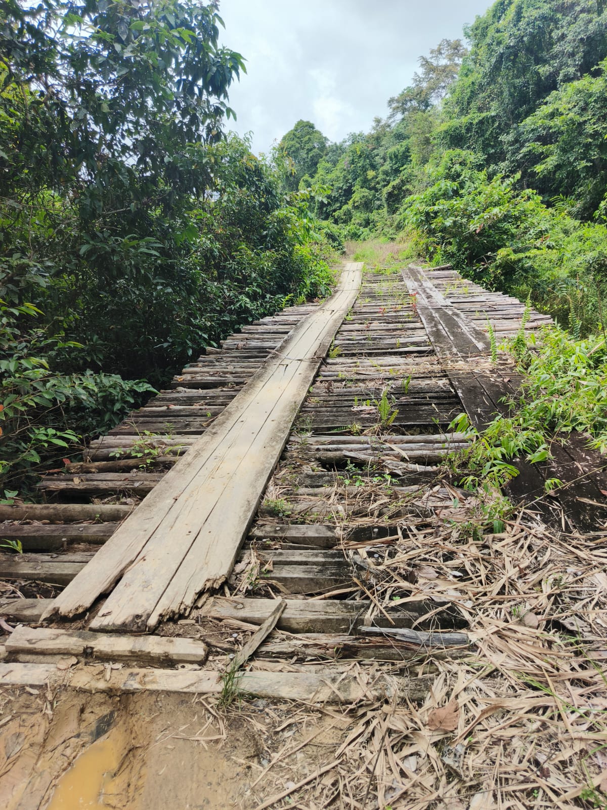 Papan-papan yang menjadi pijakan utama tampak longgar, sebagian berlubang, bahkan ada yang mulai patah.