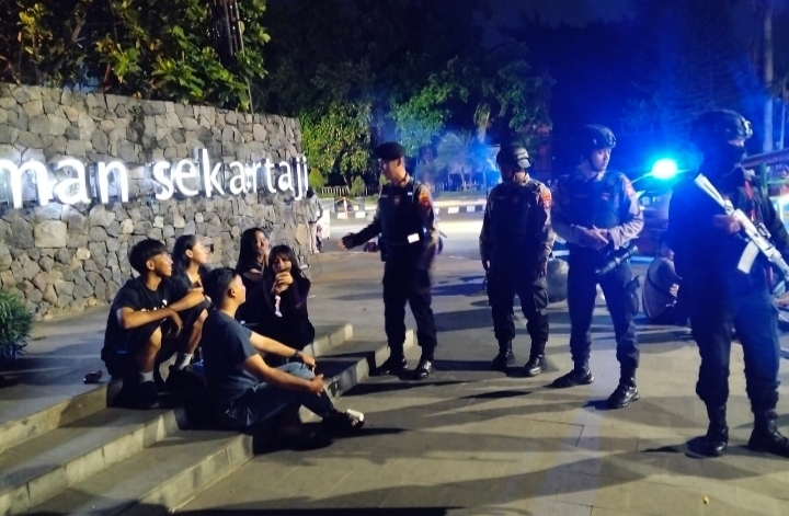Saat mendatangi Taman Sekartaji dan bantaran sungai Brantas petugas menjumpai para remaja yang masih berstatus pelajar dan mahasiswa,setelah di lakukan pemeriksaan banyak yang ber – KTP Luar Kota Kediri, Kasat Samapta memberikan edukasi himbauan Kamtibmas untuk bersama-sama menjaga keamanan dan ketertiban,